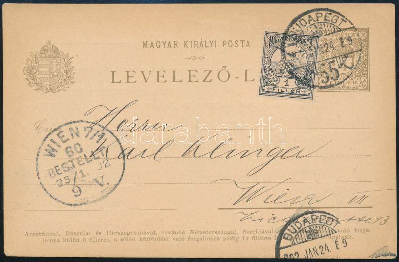 https://www.darabanth.com/en/502-Online-auction/502.0/Hungarian-philately-and-postal-history/Issues-between-1900-1919~1000034/1902-Ceglyukasztasos-1f-Turul-belyeggel-kiegeszitett-dijjegyes-levelezolap-Becsbe~II3418208