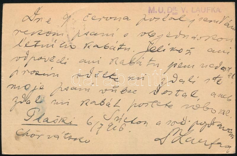 https://www.darabanth.com/en/502-Online-auction/502.0/Hungarian-philately-and-postal-history/Issues-between-1900-1919~1000034/1916-Ajanlott-5f-dijjegyes-levelezolap-25f-dijkiegeszitessel-Pragaba-PLASKI~II3417392