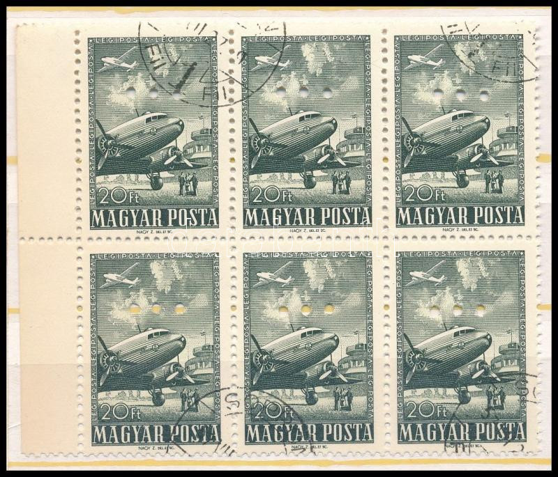 1957 Repülő V. záróérték ívszéli hatostömb hármaslyukasztással (18.000...