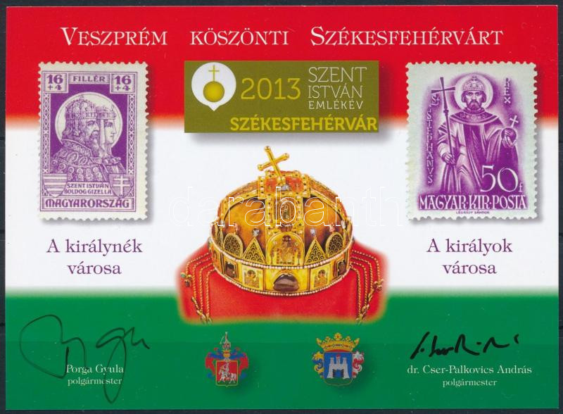https://www.darabanth.com/en/502-Online-auction/502.0/Hungarian-philately-and-postal-history/Private-souvenir-sheet~1000061/2013-Veszprem-koszonti-Szekesfehervart-emlekiv-a-2-polgarmester-altal-alairva~II3415189