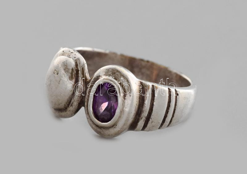 Ezüst (Ag) gyűrű ametiszt berakással, m: 57, jelzett, bruttó 4,5g