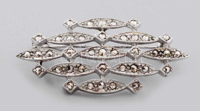 Ezüst (Ag) markazitos dekoratív bross, 4,8x2,2cm, jelzett, bruttó 9,5g