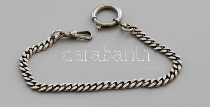 Ezüst (Ag) zsebóralánc, jelzés nélkül, fém kapoccsal, h. 25 cm, bruttó 18,5g