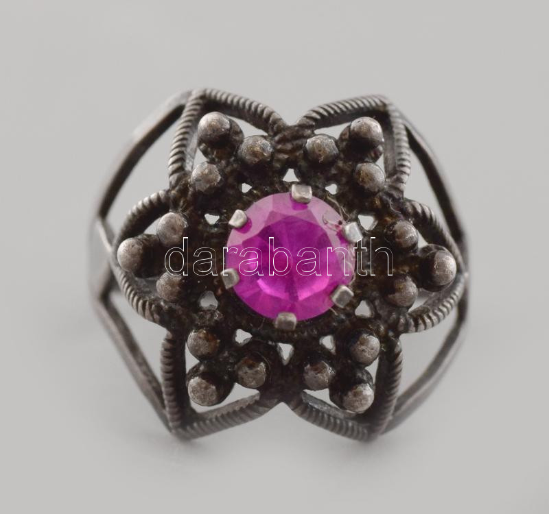 Orosz ezüst (Ag) gyűrű ametiszt berakással, jelzett, m:55, bruttó 3,9g