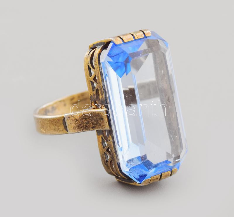 Orosz ezüst (Ag) gyűrű kék kő berakással, jelzett, m:51, bruttó 6,5g
