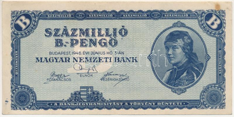 1946. 100.000.000BP nyomdai festékfolt T:F folt, egyébként erős papír