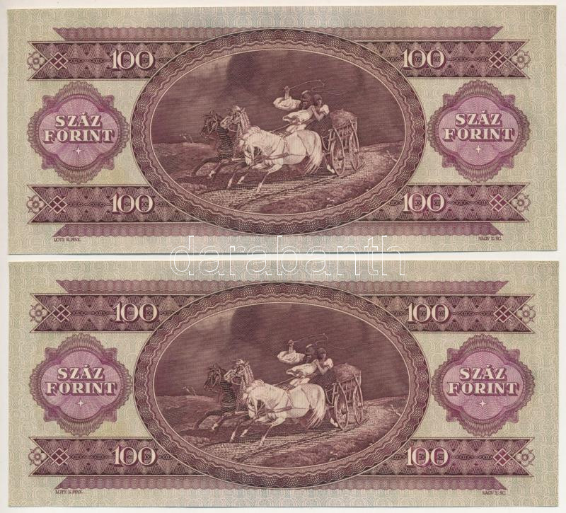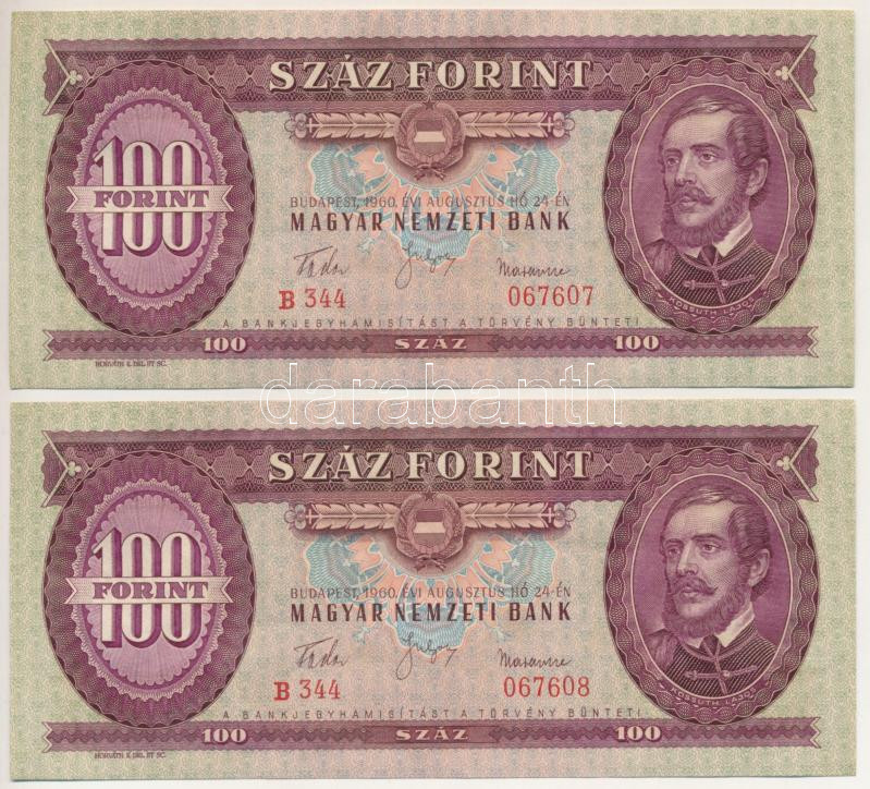 1960. 100Ft (2x) sorszámkövetők "B 344 067607 - B 344 067608" T:AU hul...