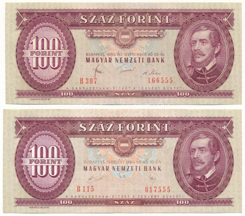 1980-1989. 100Ft (2xklf) mindkettő "555" végződésű sorszámmal T:AU,XF ...