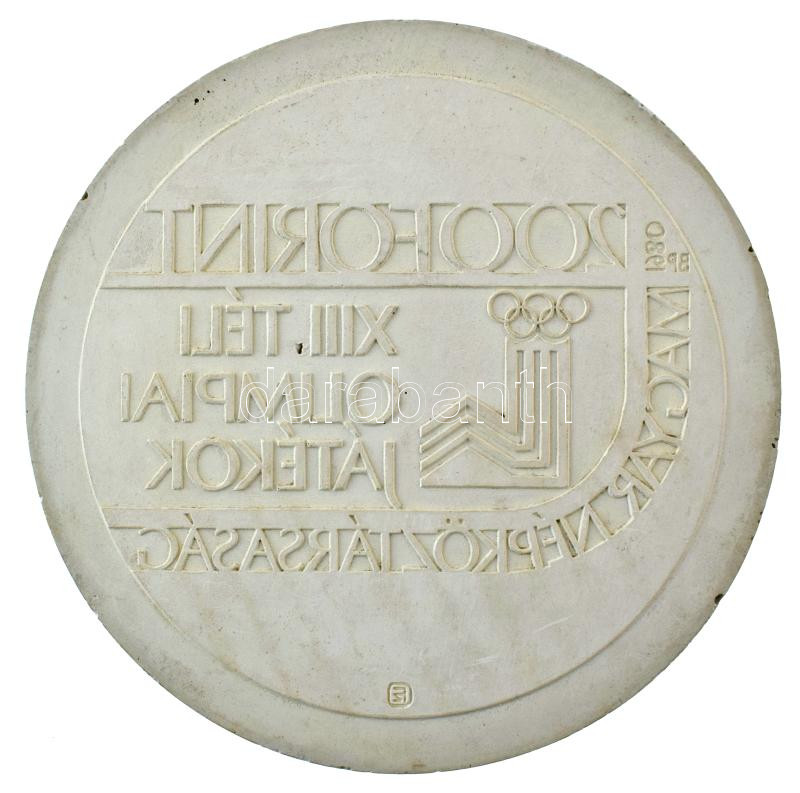 1980. 200Ft/500Ft "XIII. Téli Olimpia Lake Placid 1980" meg nem valósult érmetervezet gipsz hátlapi NEGATÍV nagyminta (158mm) T:AU,XF ph.