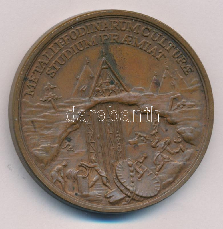 Description: 1960-1970 k. "Selmecbányai Bányászati Akadémia - bányaművelés" Matthäus Donner emlékérméjének utánverete, bronz jutalomérem. "METALLI FODINARUM CULTURAE STUDIUM PRAEMIAT / MAR THERESIA PIA AUG FEL REI METALLURG RESTAURATRIX " (45mm) T:XF