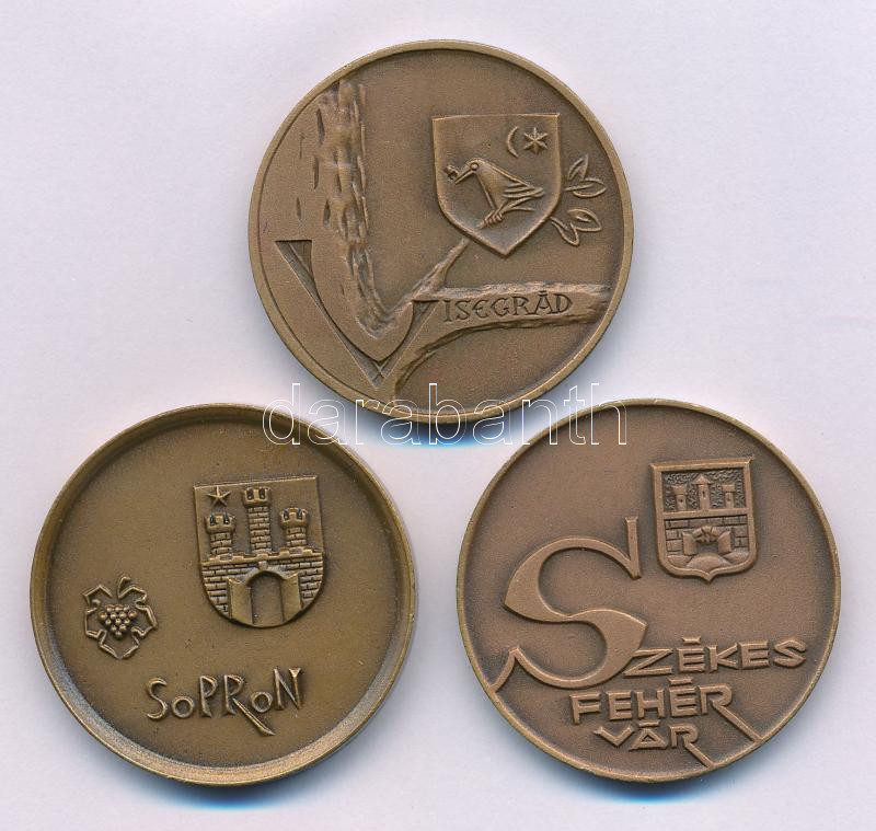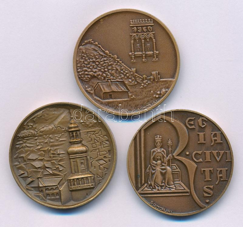 Somorjai László (1949-) DN "Sopron" + DN "Székesfehérvár" + DN "Visegrád" kétoldalas bronz emlékérmek (32mm) T:AU