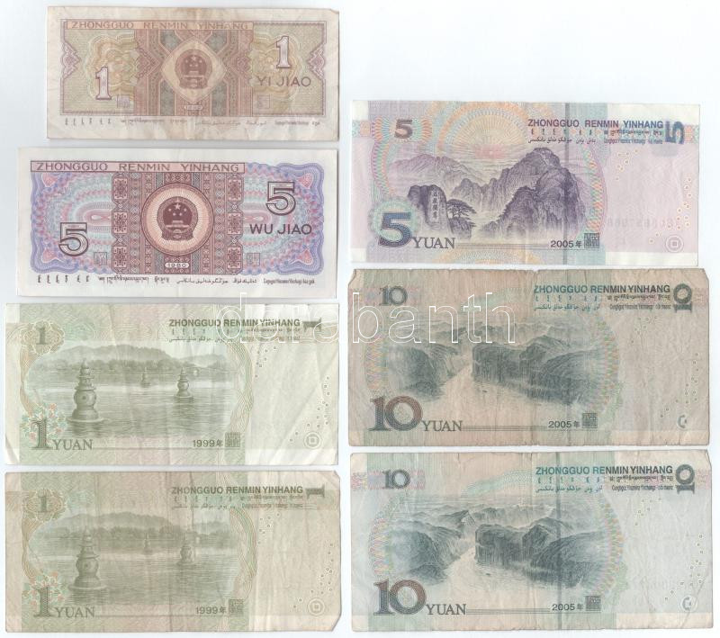 China 1980. 1 Jiao + 5 Jiao + 1999. 1 Yuan (2x) + 2005. 5 Yuan + 10 Yuan (2x) C:F,VG