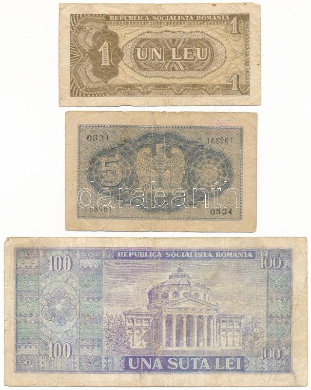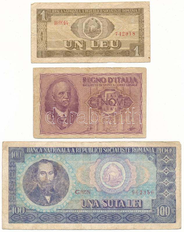Olaszország 1944. 5L "III. Viktor Emánuel" + Románia 1966. 1L + 100L T:VG