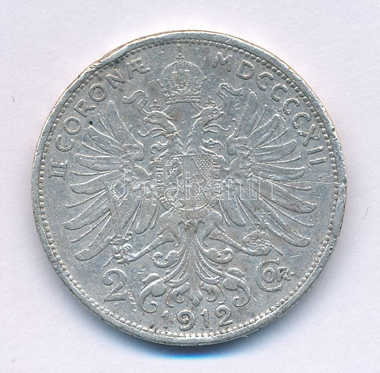 https://www.darabanth.com/en/502-Online-auction/502.0/Numismatics/Worldwide-silver-and-metal-coins~85/Ausztria-1912-2K-Ag-Ferenc-Jozsef-T-VF-kis-peremhibaAustria-1912-2-Corona-Ag-Franz-Joseph~II3416440