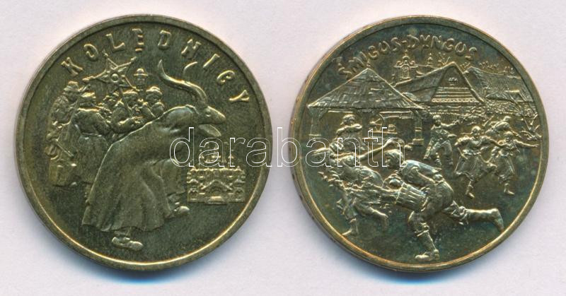 Description: Lengyelország 2001-2003. 2Zl Cu-Al-Zn (2xklf: "Karácsonyi énekesek " + "Nedves hétfő - Locsolkodás ("Śmigus-dyngus") "), a "A lengyel hagyományos szokások és rituálék naptára " sorozatból T:AU