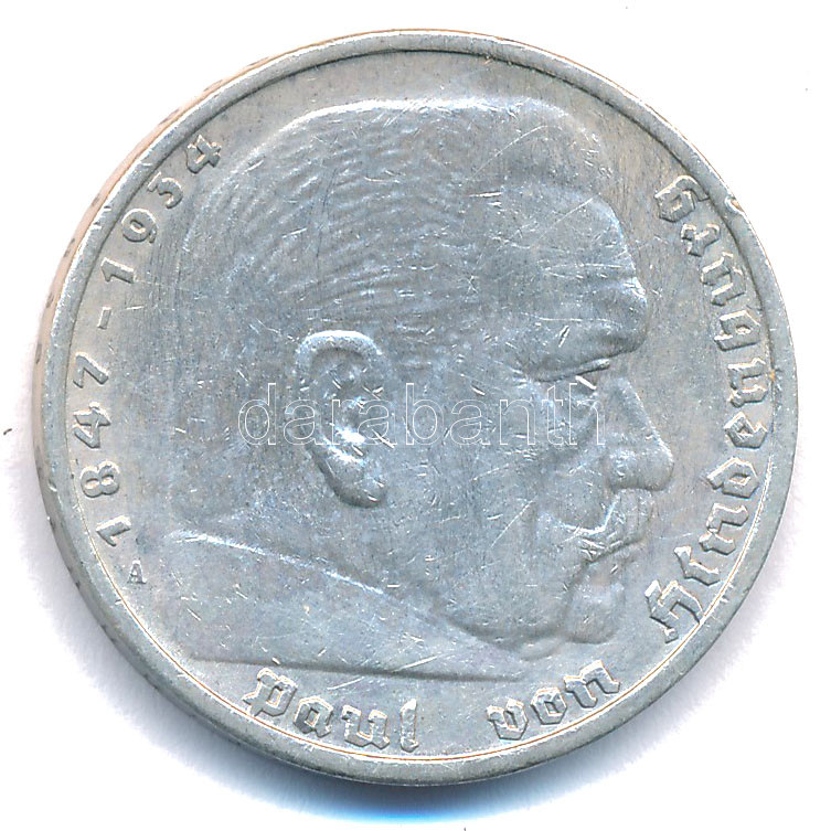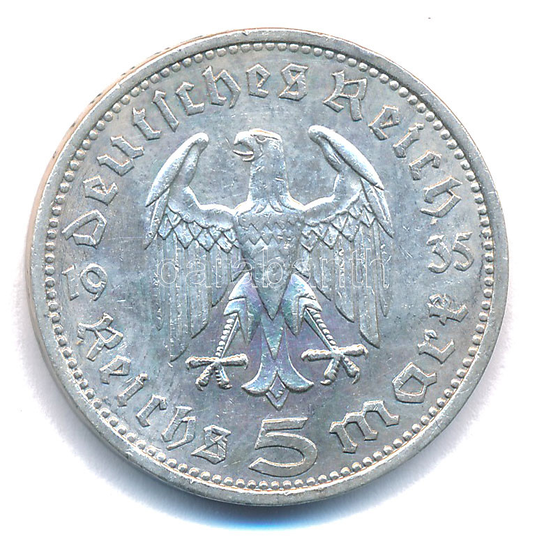 Német Harmadik Birodalom 1935A 5M Ag "Paul von Hindenburg" T:1-,2 pati... https://www.darabanth.com/en/502-Online-auction/502.0/Numismatics/Worldwide-silver-and-metal-coins~85/Nemet-Harmadik-Birodalom-1935A-5M-Ag-Paul-von-Hindenburg-T1-2-patina-German-Third-Reich-1935A-5~II2789453