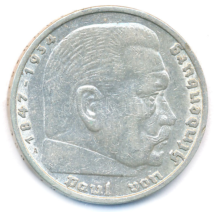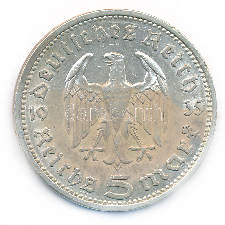 Német Harmadik Birodalom 1935A 5M Ag "Paul von Hindenburg" T:2,2- pati... https://www.darabanth.com/en/502-Online-auction/502.0/Numismatics/Worldwide-silver-and-metal-coins~85/Nemet-Harmadik-Birodalom-1935A-5M-Ag-Paul-von-Hindenburg-T2-2-patina-German-Third-Reich-1935A-5~II2789464