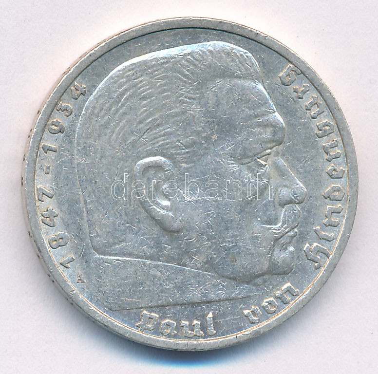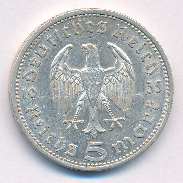 https://www.darabanth.com/en/502-Online-auction/502.0/Numismatics/Worldwide-silver-and-metal-coins~85/Nemet-Harmadik-Birodalom-1935A-5M-Ag-Paul-von-Hindenburg-T2-German-Third-Reich-1935A-5-Reichsmar~II2807664