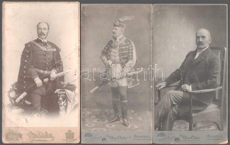 Jobaházi Dőry Pál (1853-1926) főispán 3 db keményhátú portréja, sérülésekkel, 20,5×11 cm