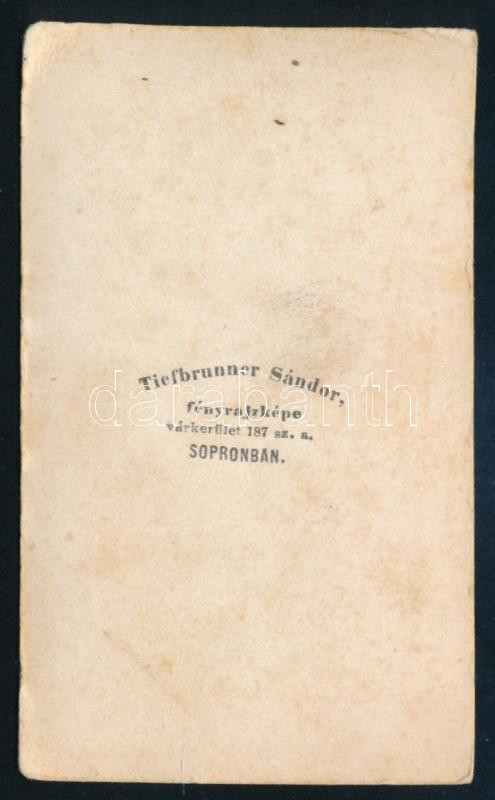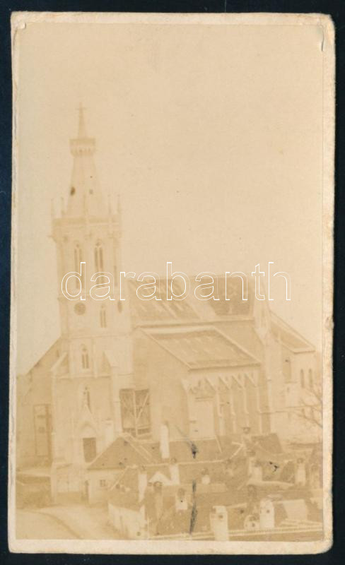 Description: cca 1860-1870 Sopron, a Szent Mihály-templom, keményhátú fotó Tiefbrunner Sándor műterméből (,,Tiefbrunner Sándor fényrajzképe várkerület 187. sz. a. Sopronban"), viseltes állapotban, 9,5x5,5 cm