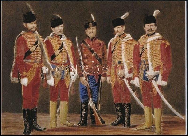 Description: cca 1861 Tiedge János pesti fényképész felvétele, amit kézzel színeztek (Sopron, törvényszéki hajdúk), 1 db modern nagyítás, jelzés nélkül, az eredeti fotót bemutatták 1862-ben, a Londonban megrendezett Ipari és Művészeti Világkiállításon, 15x21 cm