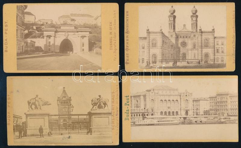 cca 1875 Budapesti városképek, 4 db keményhátú fotó, 10,5×6,5 cm