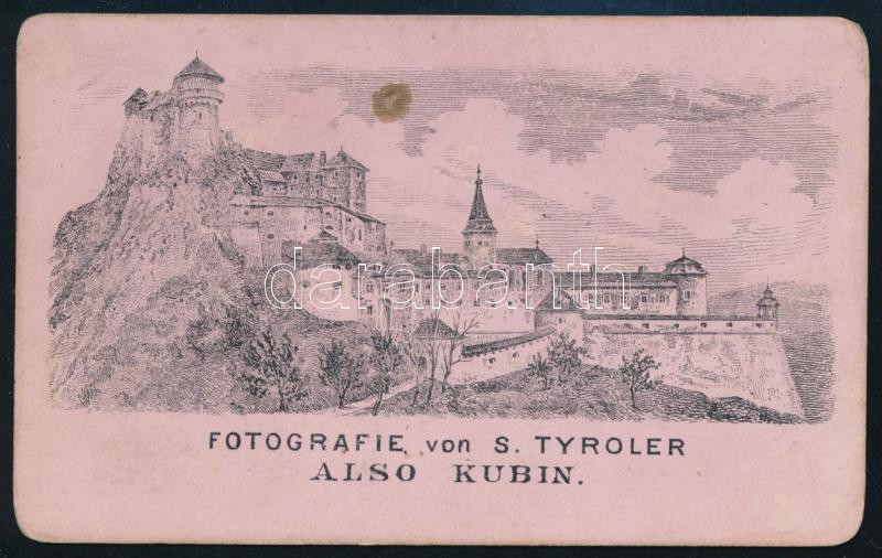 cca 1890 Fiatalember portréja, keményhátú fotó Tyroler alsókubini műterméből, szép verzóval, sérüléssel, 10,5×6,5 cm