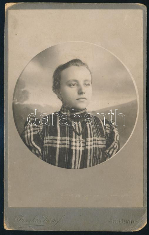cca 1900 Fiatal lány nyaklánccal, keményhátú fotó Demko József műtermé...