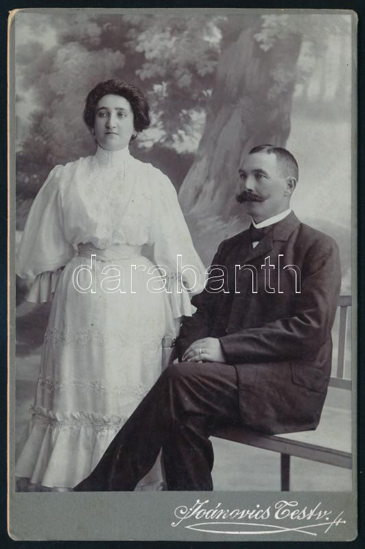 cca 1900 Házaspár portréja, keményhátú fotó a Jonovics Testvérek műter...