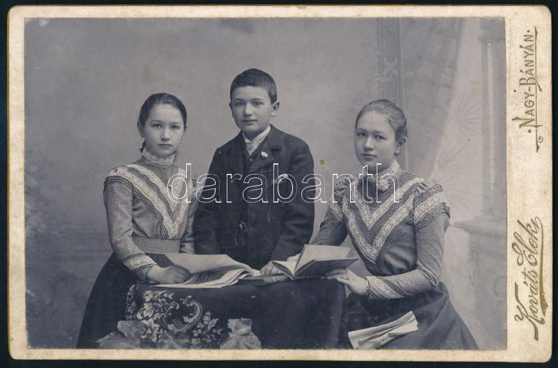 cca 1900 Molcsányi Adél, Gábor és Lily, keményhátú fotó Kováts Elek nagybányai műterméből, 16,5×10,5 cm. Ritka műterem!