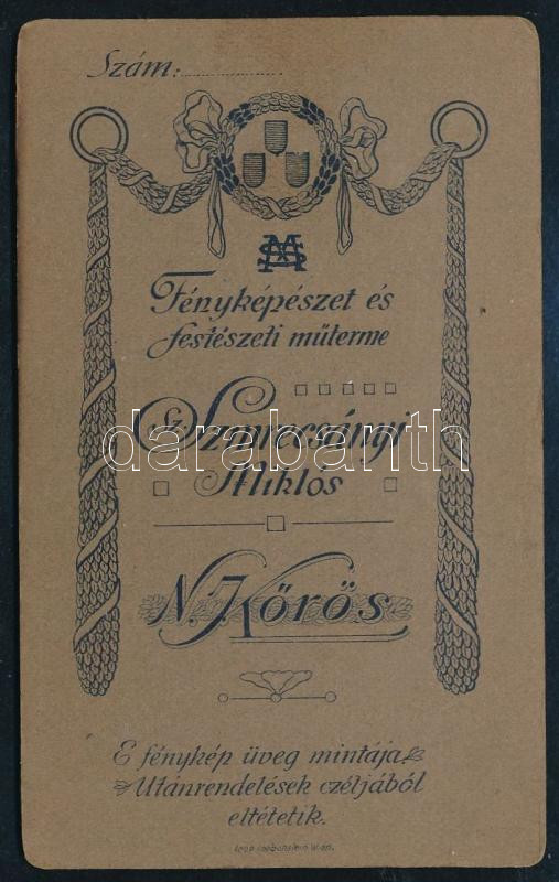 cca 1910 Elegáns szemüveges férfi portréja, vizitkártya Szmrecsányi Miklós nagykőrösi műterméből, 10,5x6,5 cm