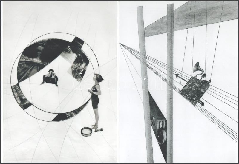 Description: cca 1929 Moholy-Nagy László (1895-1946) magyar - amerikai fotográfus kollázsai, a néhai Lapkiadó Vállalat központi fotólaborjának archívumából 2 db modern nagyítás, jelzés nélkül, 21x15 cm