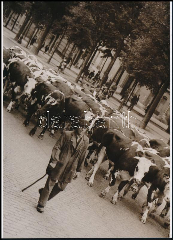 Description: cca 1935 Thöresz Dezső (1902-1963) békéscsabai gyógyszerész és fotóművész felvétele (A csabai csorda hazatér), 1 db modern nagyítás, jelzés nélkül, 21x15 cm