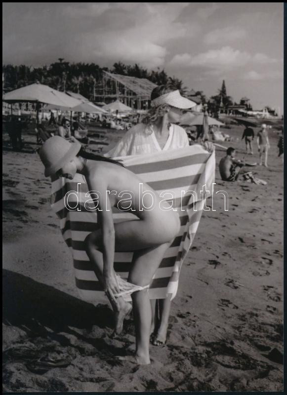 cca 1979 "Takarásban", szolidan erotikus felvétel, 1 db modern nagyítá...