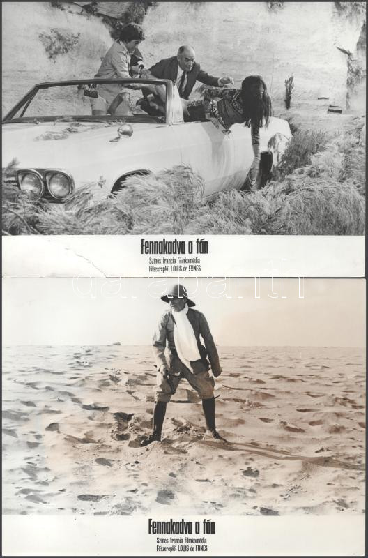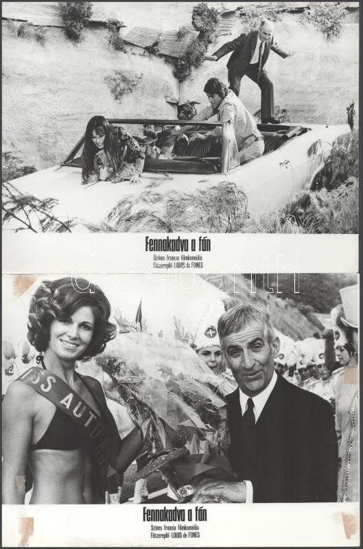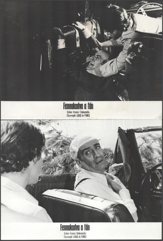 Description: cca 1989 előtt készült, "Fennakadva a fán" című francia film jelenetei és szereplői, 8 db vintage produkciós filmfotó (vitrinfotó, lobbyfotó) ezüst zselatinos fotópapíron, a használatból eredő (esetleges) kisebb hibákkal, barnás elszíneződéssel, 18x24 cm