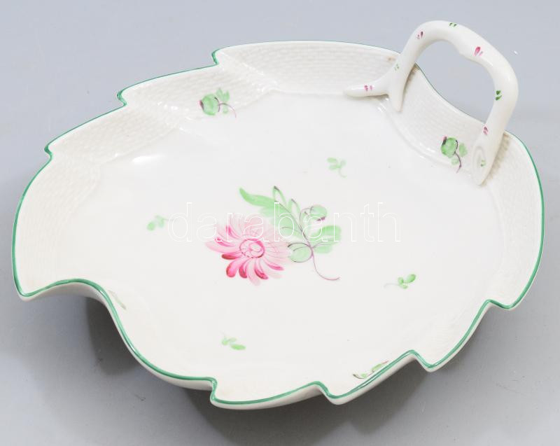 Herendi Tertia virágmintás levél alakú kínáló, jelzett, kis kopással, ...