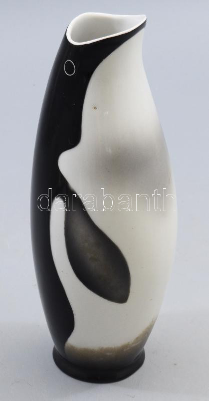 Hollóházi pingvin alakú váza. Terv.: Koczor Sándor. Jelzett, kis kopással, m: 20 cm