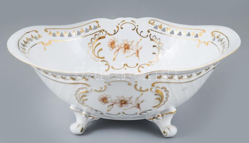 Hollóházi virágmintás kínáló, jelzett, hibátlan, 25x19x10 cm