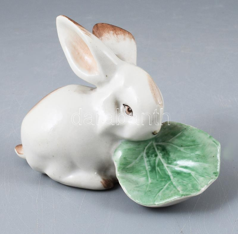 Zsolnay salátát evő nyúl, jelzés nélkül, hibátlan, 10x6,5 cm
