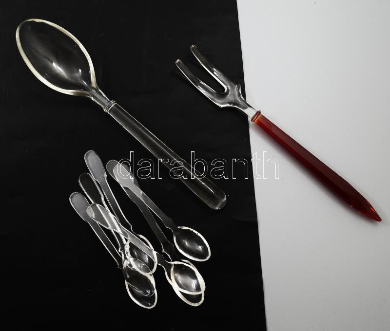 8 darab régi üveg evőeszköz, pattogzással, h: 25 cm alatt