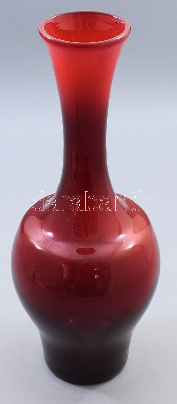 Szakított rubinüveg váza, jelzés nélkül, hibátlan, m: 36 cm