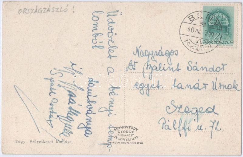 1940 Bény, Bína; Római katolikus templom, Országzászló. Fogyasztási Sz...