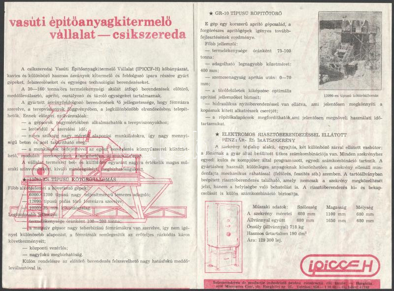 A székelyudvarhelyi Tehnoutilaj Állami Vállalat reklámlapja