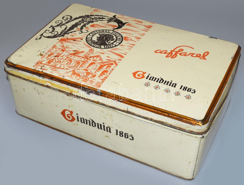 cca 1940 Gianduia desszertes fémdoboz, kopott, ütődéssel 34x22 cm
