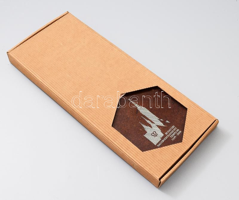 A világörökség részét képezÅ‘ budavári Nagyboldogasszony-templom (Mátyás-templom) tetejérÅ‘l származó, mázas Zsolnay cserép, dobozában, eredetiséget igazoló tanúsÃtvánnyal, sorszámmal, 34,5x14,5 cm / Glazed Zsolnay roof tile from the Church of the Assumption of the Buda Castle (Matthias Church) World Heritage site, in original box, with certificate, 34,5x14,5 cm