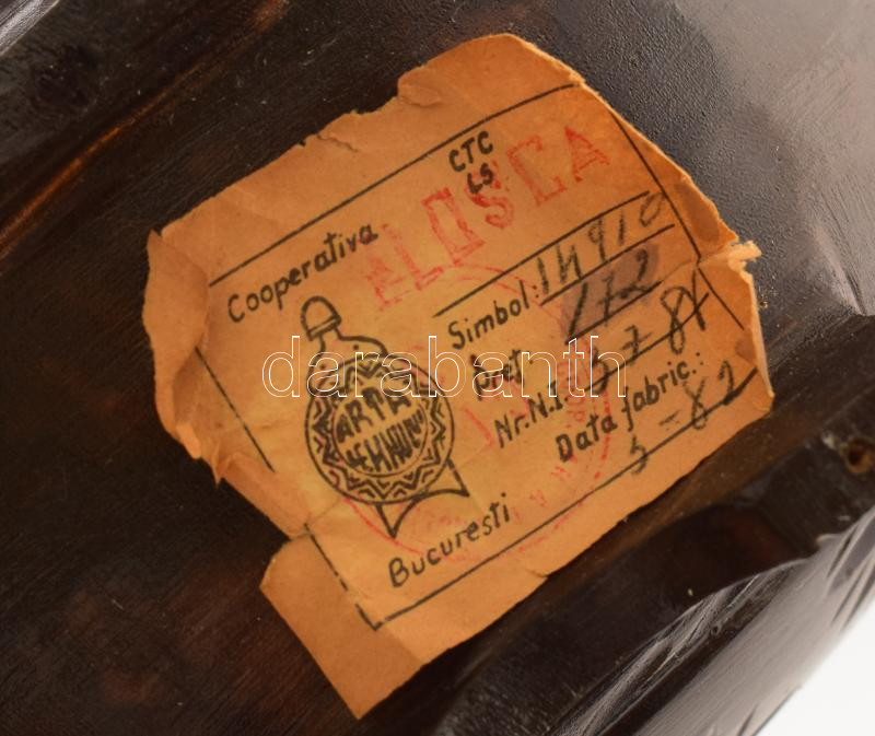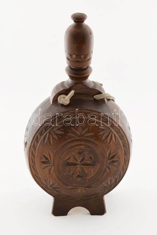 Román faragott fa kulacs, bukaresti jelzéssel 32 cm