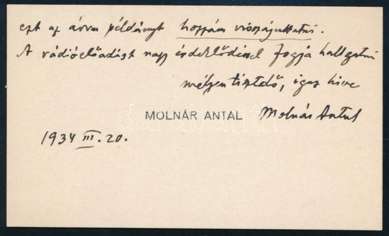 1934 Molnár Antal (1890-1983) zenetörténész, zeneszerző és zeneesztéta... https://www.darabanth.com/en/504-Online-auction/504.0/Art-and-other-collectibles/Historical-documents-manuscripts~1000003/1934-Molnar-Antal-1890-1983-zenetortenesz-zeneszerzo-es-zeneeszteta-bracsamuvesz-nevj~II3403263