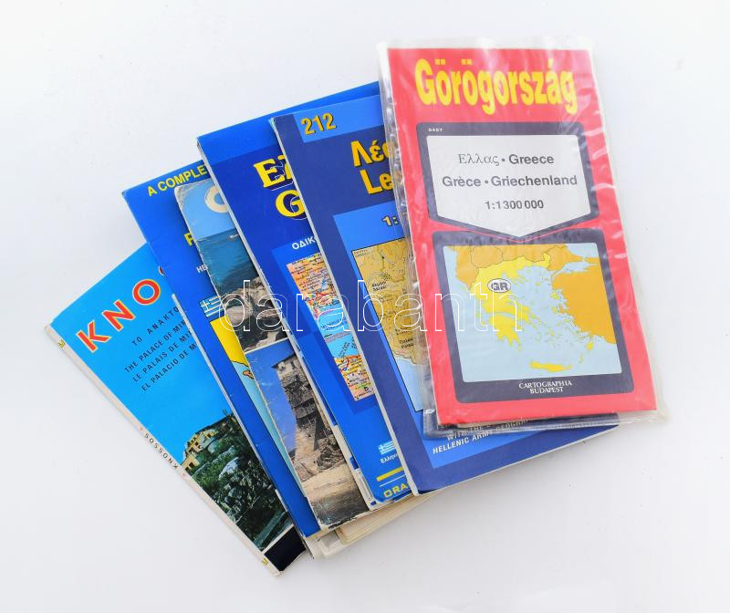 9 db Görögországgal kapcsolatos térkép és turisztikai kiadvány (Leszbosz, Korfu, Knósszosz, stb.)