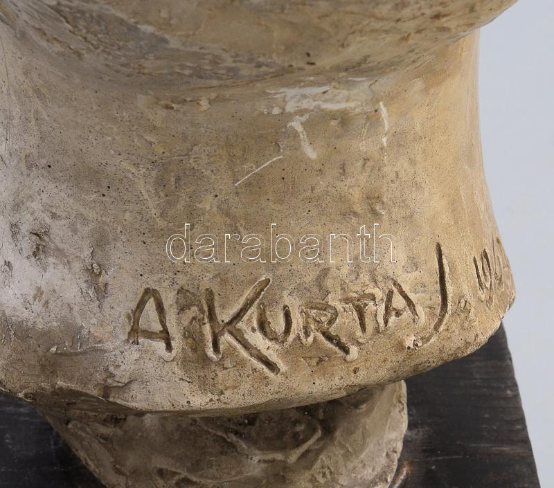 Andrássy Kurta János (1911-2008): Női fej. Festett gipsz, Jelzett. fa talapzaton. 40 cm