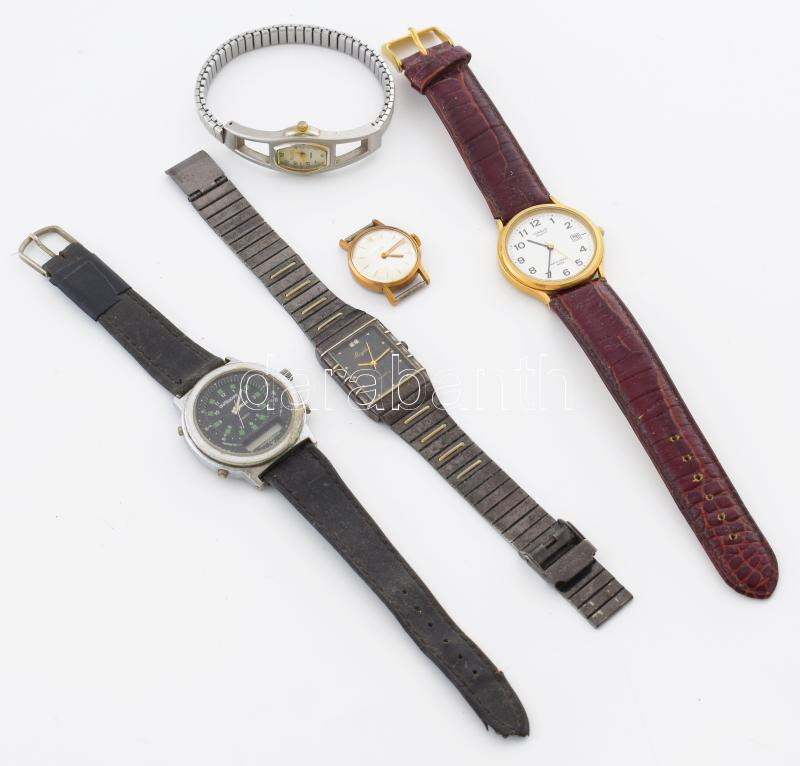 5 darab orosz és japán karóra, közte Casio, vegyes állapotban